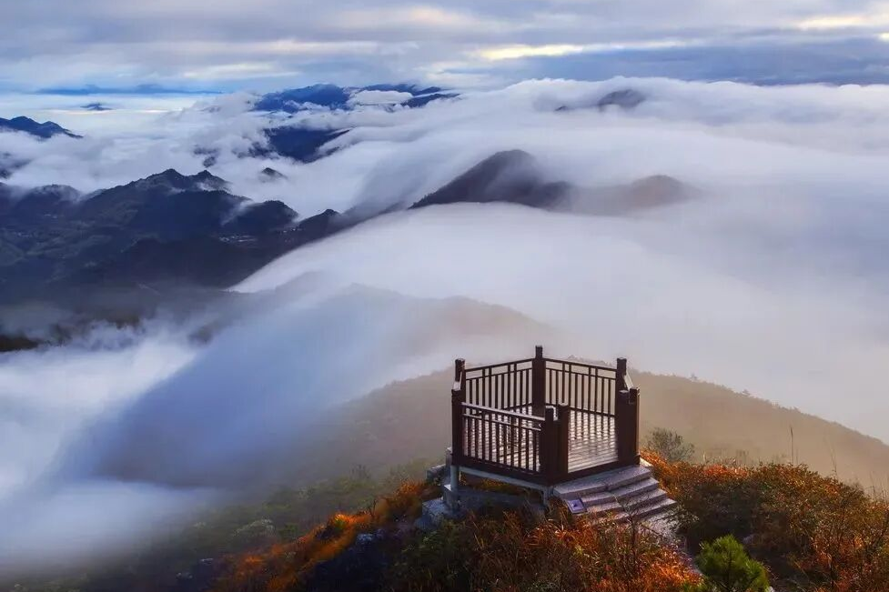 立于凤阳山巅,极目北望,“浙江绿谷”群峰竞秀、溪涧纵横。用江浙第一高峰的视角,给出“群山如环立,谁与共比肩”的回应。
